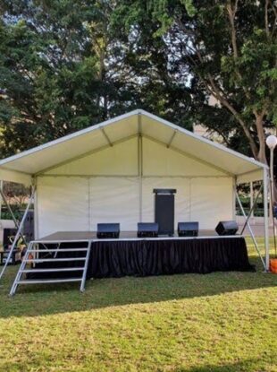 Create a professional and stylish stage setup with our canopy stages, perfect for outdoor concerts, corporate events, and weddings.